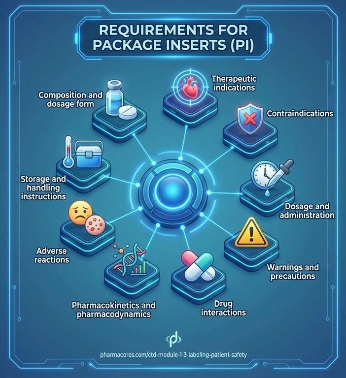 - Pharmaceutical particulars (e.g., shelf life, storage)