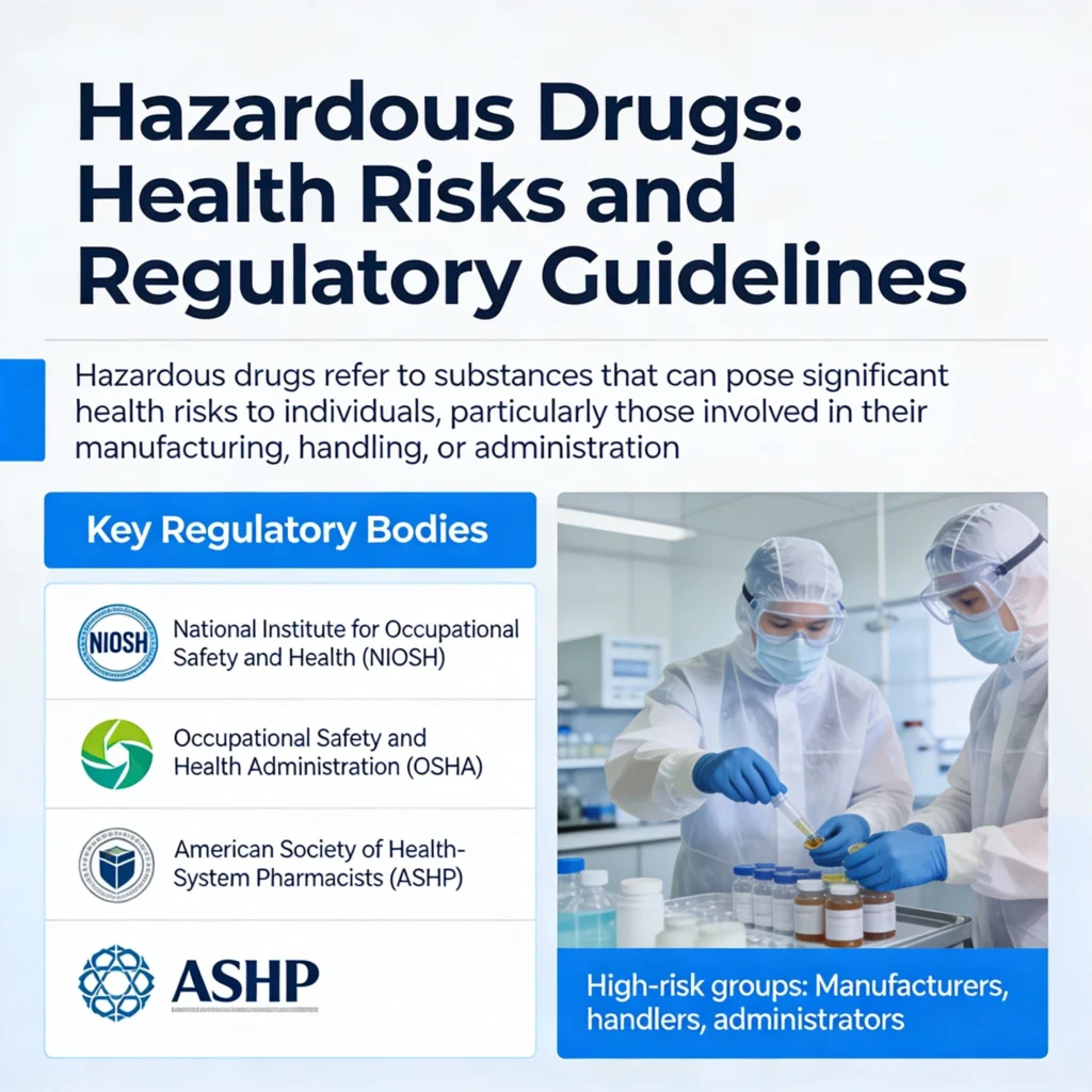 Hazardous drugs refer to substances that can pose significant health risks to individuals, particularly those involved in their manufacturing, handling, or administration. According to guidelines from the National Institute for Occupational Safety and Health (NIOSH), the Occupational Safety and Health Administration (OSHA), and the American Society of Health-System Pharmacists (ASHP).